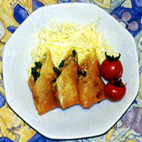 4. 紙をしいた器に取り、おろし大根、おろし生姜を添えて天つゆでいただく。天つゆの変わりに、あっさりと塩、こしょうで食べるのもおいしい。