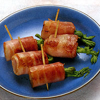 5. ベーコンで6のたらの芽を巻き、爪楊枝でとめる。